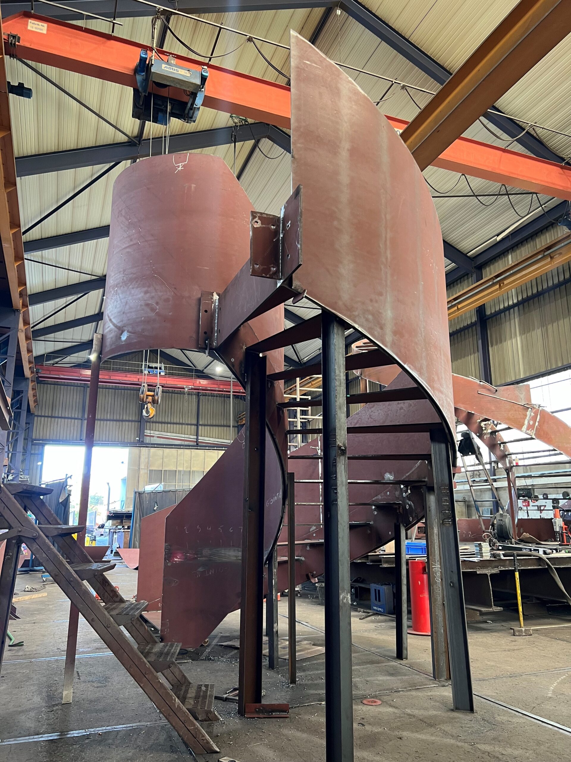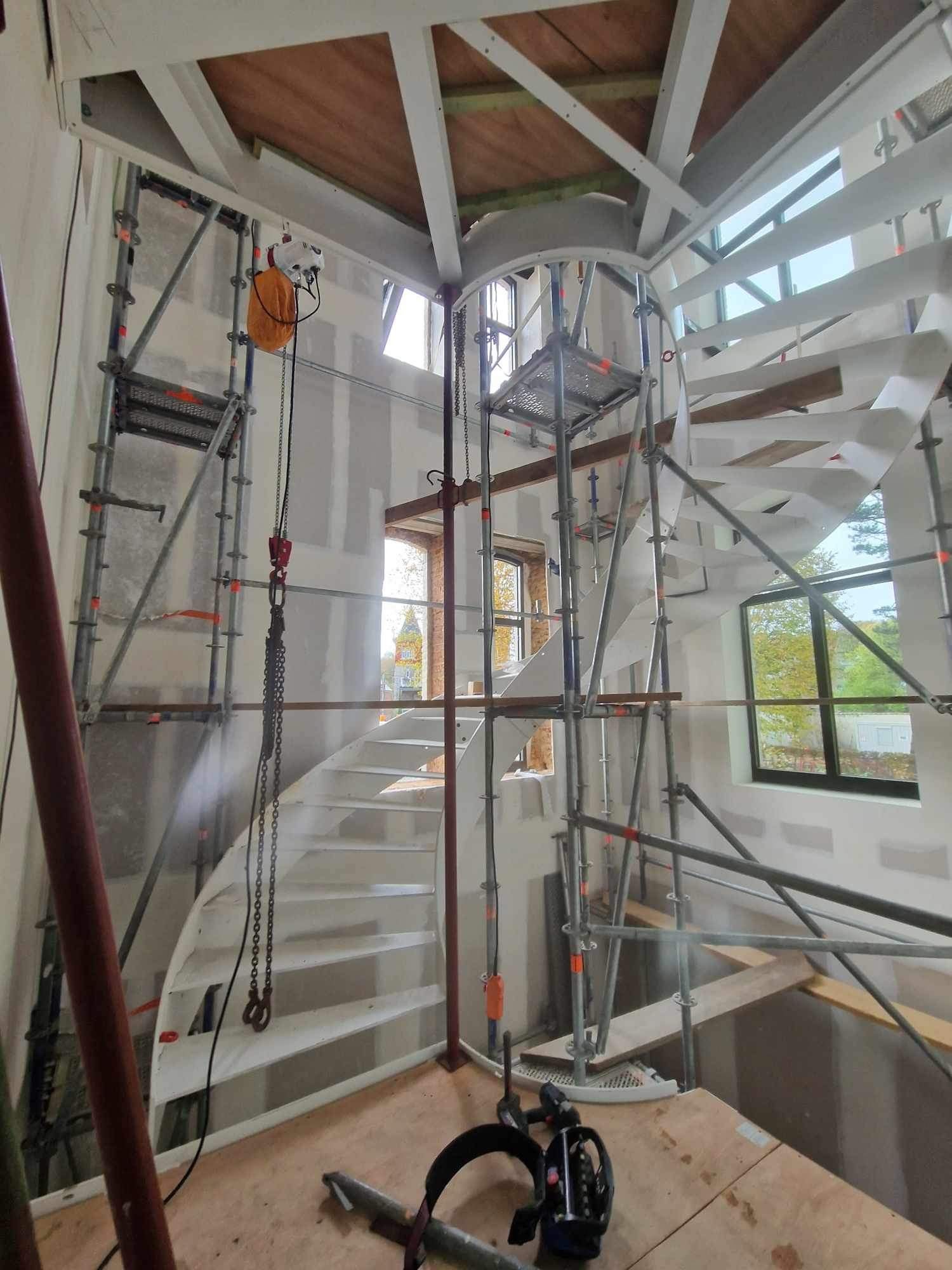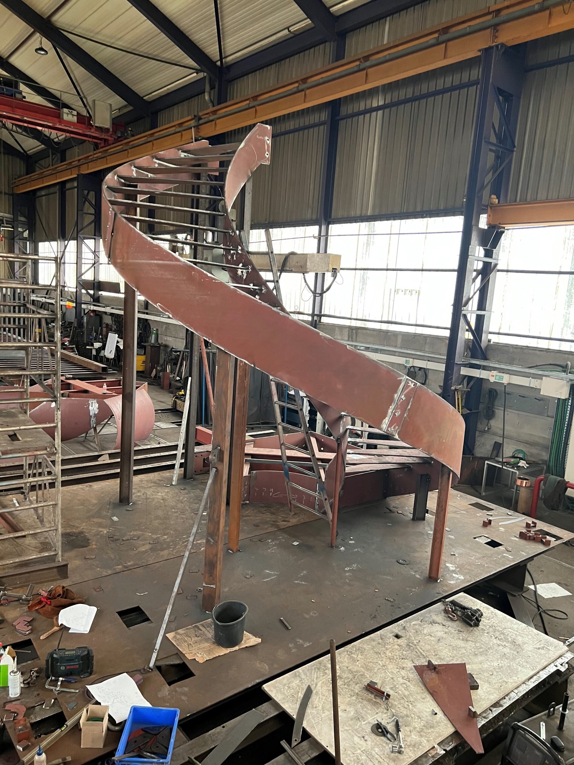 Escalier : WépionGerard Dejardin2025-11-19T10:33:27+01:00 EscalierClient : Ferronnerie d’Art Dejeond – Delarge | Liège Lieu : Wépion (BE) Poids : 6 Tonnes Matière : Acier peint Année de construction: 2024 Galerie photo du projet
